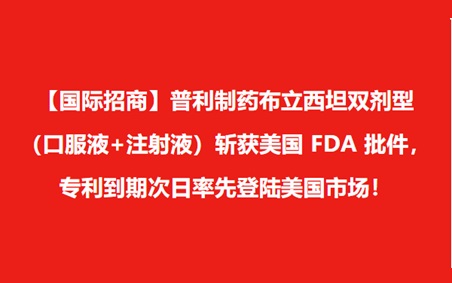 【國際招商】普利制藥布立西坦雙劑型(口服液+注射液)斬獲美國 FDA 批件,專利到期次日率先登陸美國市場!