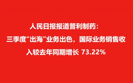 人民日?qǐng)?bào)報(bào)道普利制藥: “出海”業(yè)務(wù)出色,三季度國(guó)際業(yè)務(wù)銷售收入較去年同期增長(zhǎng) 73.22%