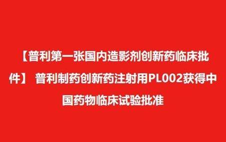 【普利第一張國(guó)內(nèi)造影劑創(chuàng)新藥臨床批件】 普利制藥創(chuàng)新藥注射用PL002獲得中國(guó)藥物臨床試驗(yàn)批準(zhǔn)