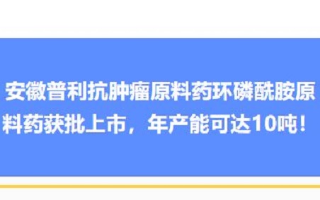 安徽普利抗腫瘤原料藥環(huán)磷酰胺原料藥獲批上市,年產能可達10噸!