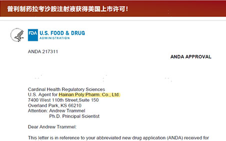 近日,海南普利制藥股份有限公司收到美國食品藥品監(jiān)...