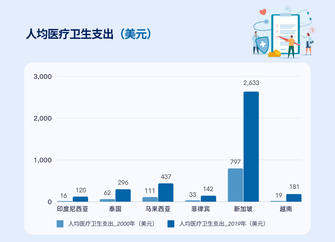 數(shù)達(dá)2.79億人,65歲以上的人口數(shù)量超過(guò)1700萬(wàn),占比5.95%。東南亞地區(qū)的醫(yī)療剛需與保健需求在較長(zhǎng)時(shí)期內(nèi)將保持穩(wěn)健增長(zhǎng)。