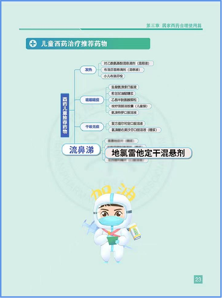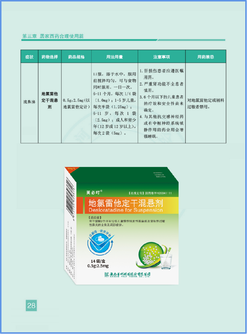 本次目錄在兒童西藥治療推薦藥物模塊,推薦芙必叮-地氯雷他定干混懸劑,用于6個月及以上兒童“流鼻涕”癥狀。