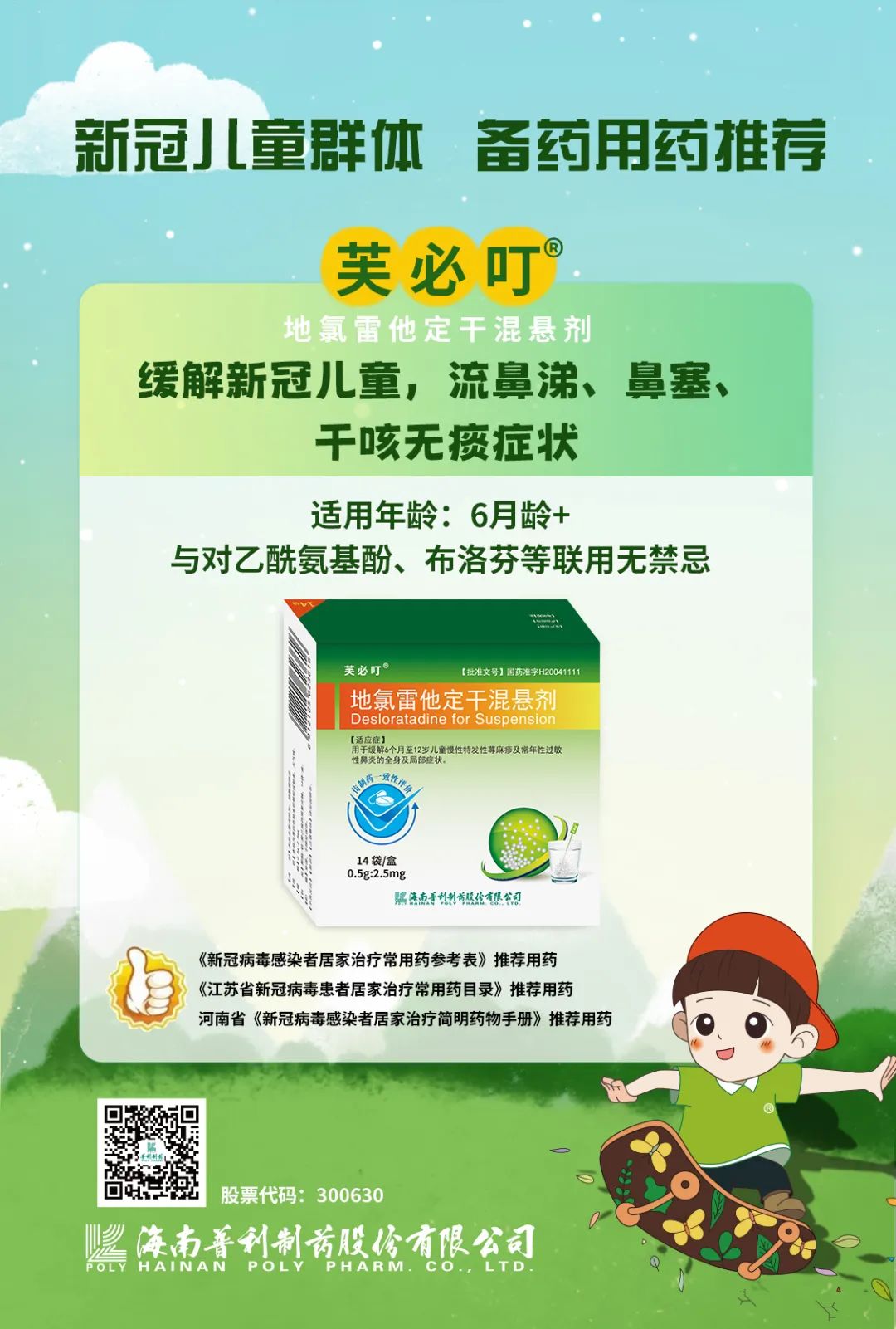 近日,芙必叮-地氯雷他定干混懸劑入選河南省藥學會《新冠病毒感染者居家治療簡明藥物手冊》。是海南普利制藥股份有限公司的獨家品種,劑型單列