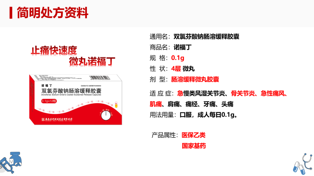 普利制藥以雙氯芬酸為有效成分,采用獨(dú)家微丸專利技術(shù),研發(fā)4重微丸,制作獨(dú)家腸溶緩釋膠囊。藥物服用后可快速起效,最快15分鐘迅速止痛;并且作用時(shí)間長,鎮(zhèn)痛時(shí)間維持24小時(shí);在關(guān)節(jié)炎、風(fēng)濕疼痛,腰背痛、痛經(jīng)、痛風(fēng)等均有良好的效果