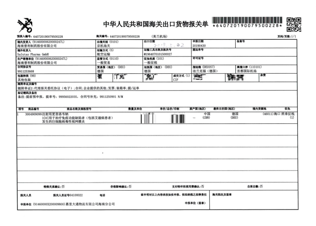 海南普利制藥股份有限公司于近日收到了哥斯達(dá)黎加衛(wèi)生部簽發(fā)的注射用更昔洛韋的上市許可。